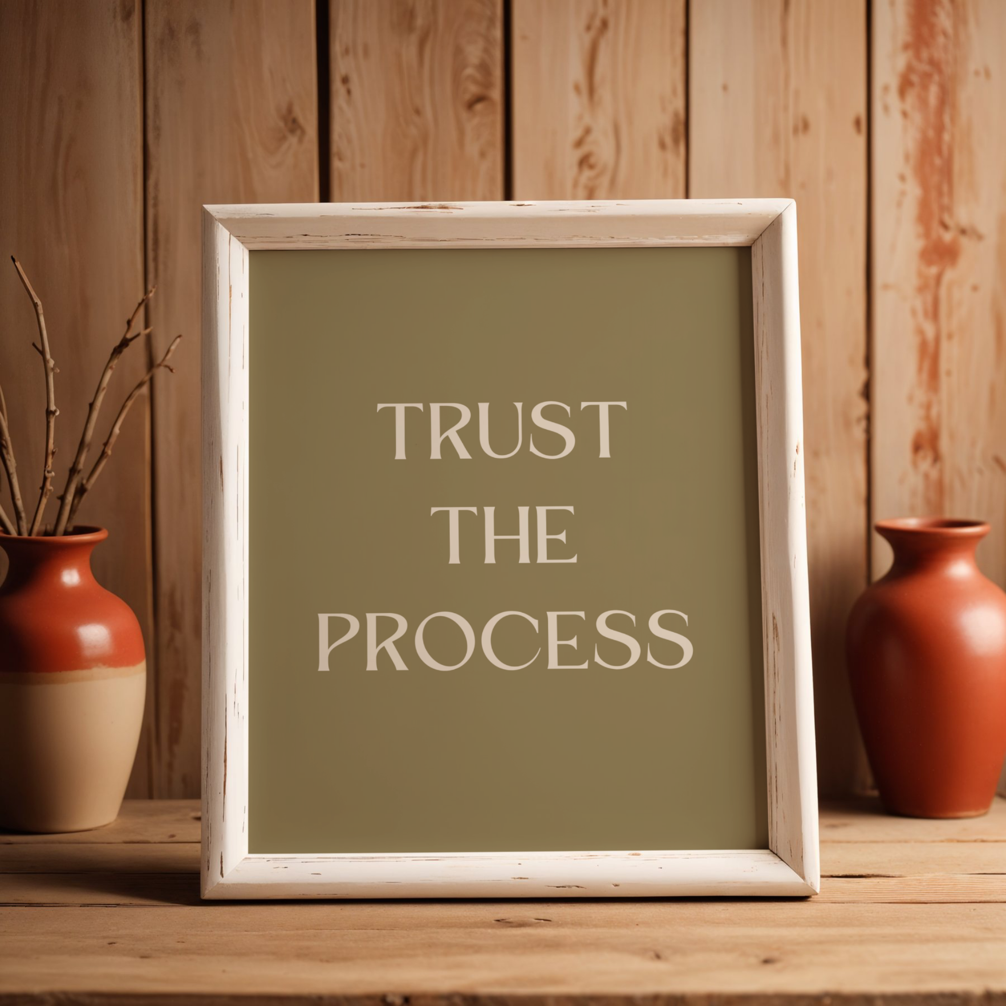 Sublimez vos murs avec cette affiche citation motivante « Trust the process ». Un design minimaliste et intemporel, disponible en téléchargement instantané pour une décoration murale inspirante. Parfaite pour votre bureau, chambre ou salon, cette typographie élégante apporte une touche de sérénité et d’encouragement à votre quotidien.